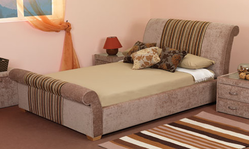 Stylish sleigh style bed with curved head and footboard. Upholstered in luxurious real leather in either brown or black.